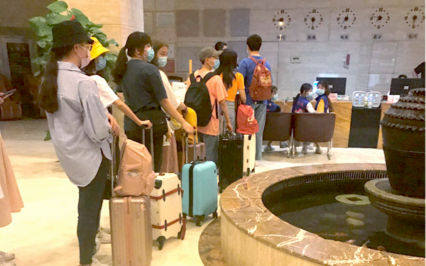 两个半小时的航班,在飞机上也见证了白天向黄昏的过渡,环绕南海观音一圈后抵达,此时已是夜幕,辅导员们也是在这里等待多时,真的幸苦他们啦,登记完后匆忙的坐上由三亚开往文昌的大巴,并在辅导员三个小时到达酒店的承诺中行驶了四个小时,到达酒店登记完后同学们就各自前往自己的房间就寝。