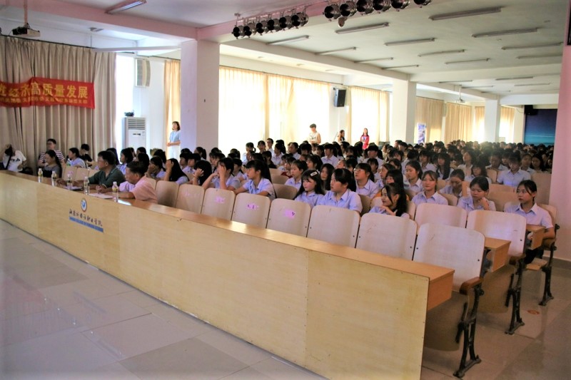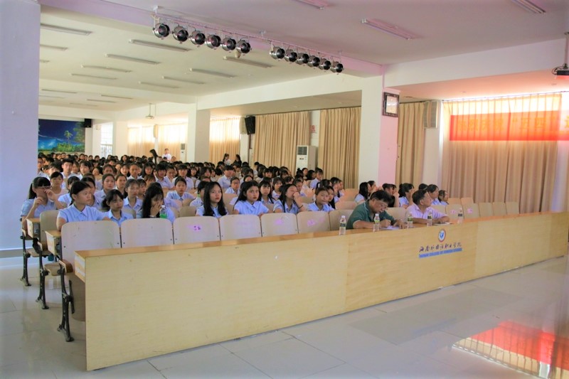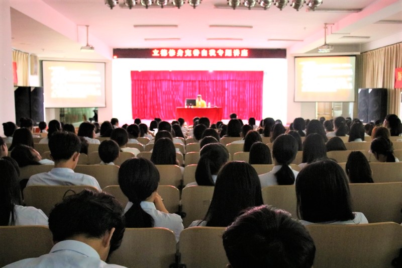 为了深入学习贯彻习近平新时代中国特色社会主义思想、十九大精神,引导学生忠于祖国、热爱人民、勇担使命、发奋成才。5月6日,我系在多功能报告厅举办了由学院关心下一代工作委员会主任韩祝畴主讲的“立德修身完善自我”主题讲座,来自我系中高职一共10个班的学生参与此次讲座。学院关工委莫运深副主任、陈献积同志出席讲座,讲座由英语系党总支书记林鹏主持。