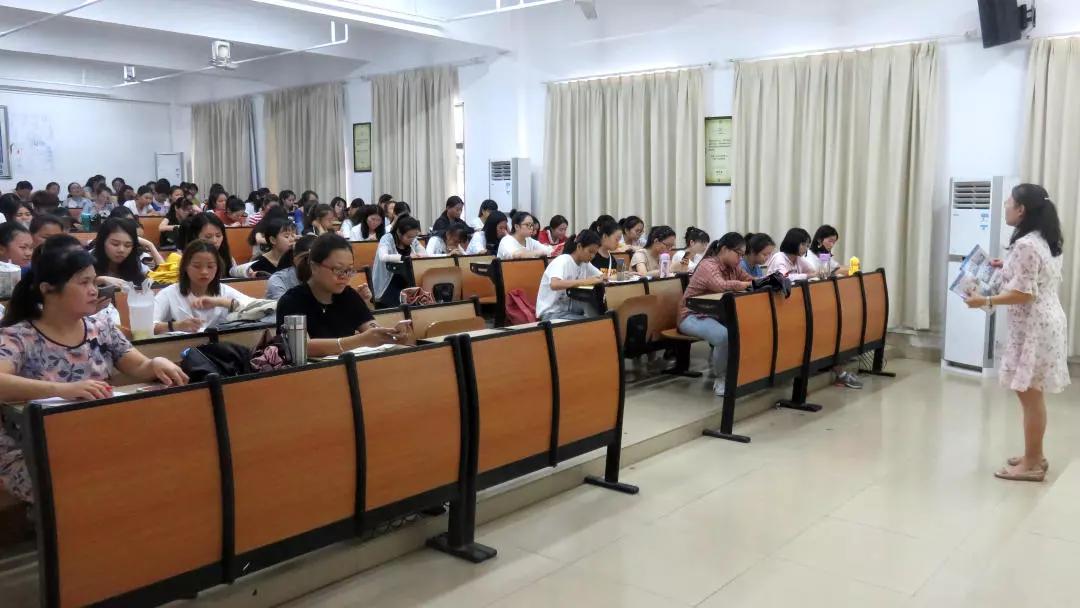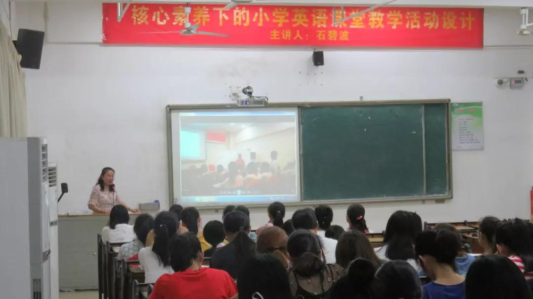 11月14日,我系在AE102教室举行题为“核心素养目标下的小学英语课堂教学活动设计”的讲座,讲座特别邀请文昌市教育局小学教研室副主任石碧波作主讲,英语系2016级、2017级应用英语专业(少儿师资方向)和2017级英语教育专业学生及老师共100余人到场聆听。