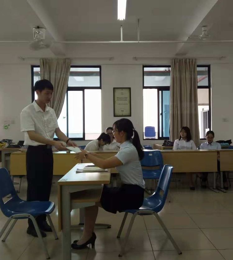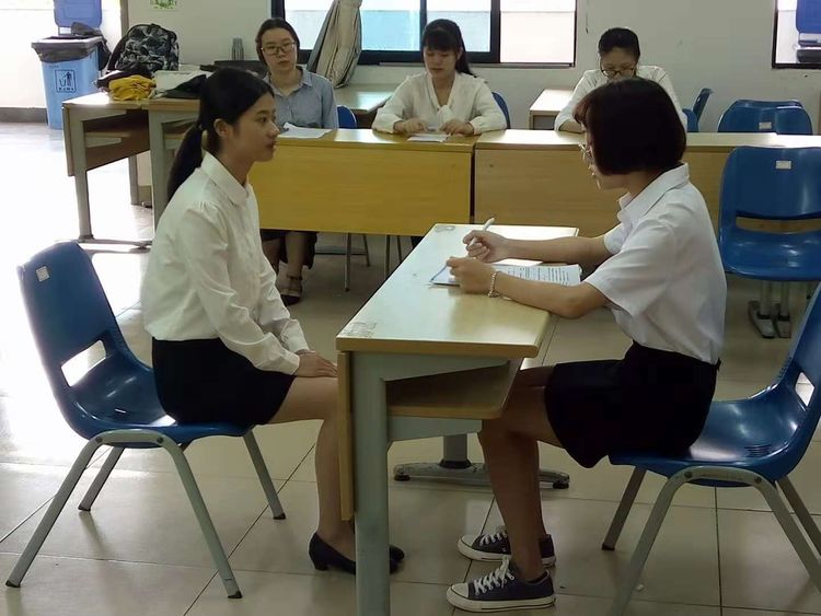 同学们凭着扎实的英语基础,流利的英语口语,以实战为标准要求自己,同时展现了当代大学生青春朝气、有作为的一面,并赢得了“面试官”的好评。面试过程中,同学们以沉着冷静的心态;大方得体的姿态;始终如一的微笑,来一一回答面试官的问题。