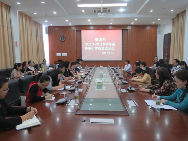 12月4日下午,英语系在综合楼七楼第二会议室召开了英语系2017年冬季小学期活动总结会议。张清萍主任主持会议,英语系全体教职工出席会议。