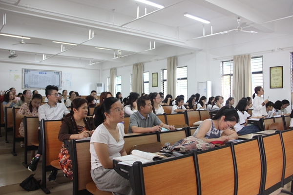 我系15应英(502)班学生及全体教师认真听课中