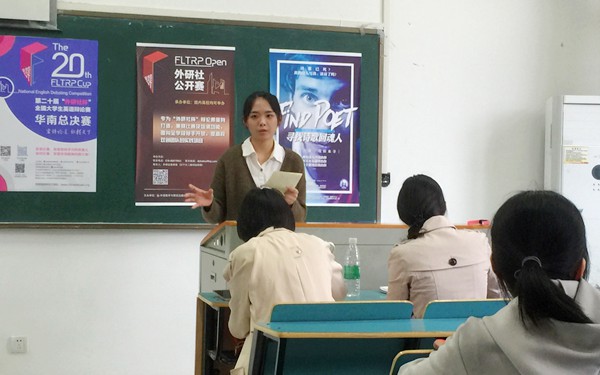 4月7日—9日,由共青团中央、全国学联、北京外国语大学主办的第20届“外研社杯”全国大学生英语辩论赛(华南赛区)决赛在湖北黄冈师范学院举行。来自华南地区12个省、自治区、港澳台的111所高校代表队参加了本次比赛。我院应用英语系谢金铭、王鹏两位同学组成的代表队与广东外语外贸大学、华南师范大学、武汉科技大学等多所“985”、“211”高校选手同台竞技,最终凭借优异的表现成功晋级全国总决赛,我院也成为华南赛区唯一一所晋级的高职院校。