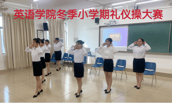 礼仪教育一直是beat365德育特色和靓丽名片,为了培养学生文明诚信、团结协作的集体荣誉感,彰显学生良好的礼仪风范和健康向上的精神风貌,11月17日,我院应用英语教研室在冬季小学期期间开展了礼仪操比赛。