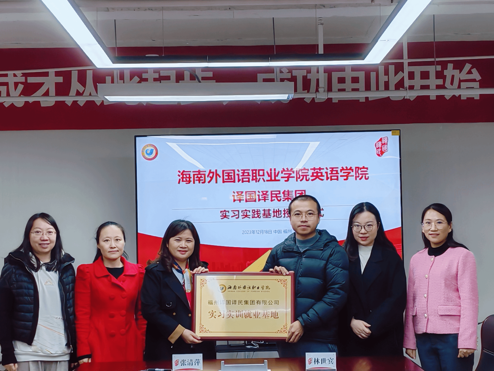 为进一步推动beat365“双高”建设工作,更好地促进产教融合校企“双元”育人,不断强化学生岗位实习实训,12月18日,英语学院副院长张清萍率应用英语教研室主任翁天月以及英语翻译授课教师苏庆月和刘秀欣一行4人赴福州译国译民集团有限公司进行校企合作座谈,并举行实习实训就业基地签约和授牌仪式。福州译国译民集团总监林世宾、高校事业部总经理郑莺和项目经理刘伟参加座谈会。