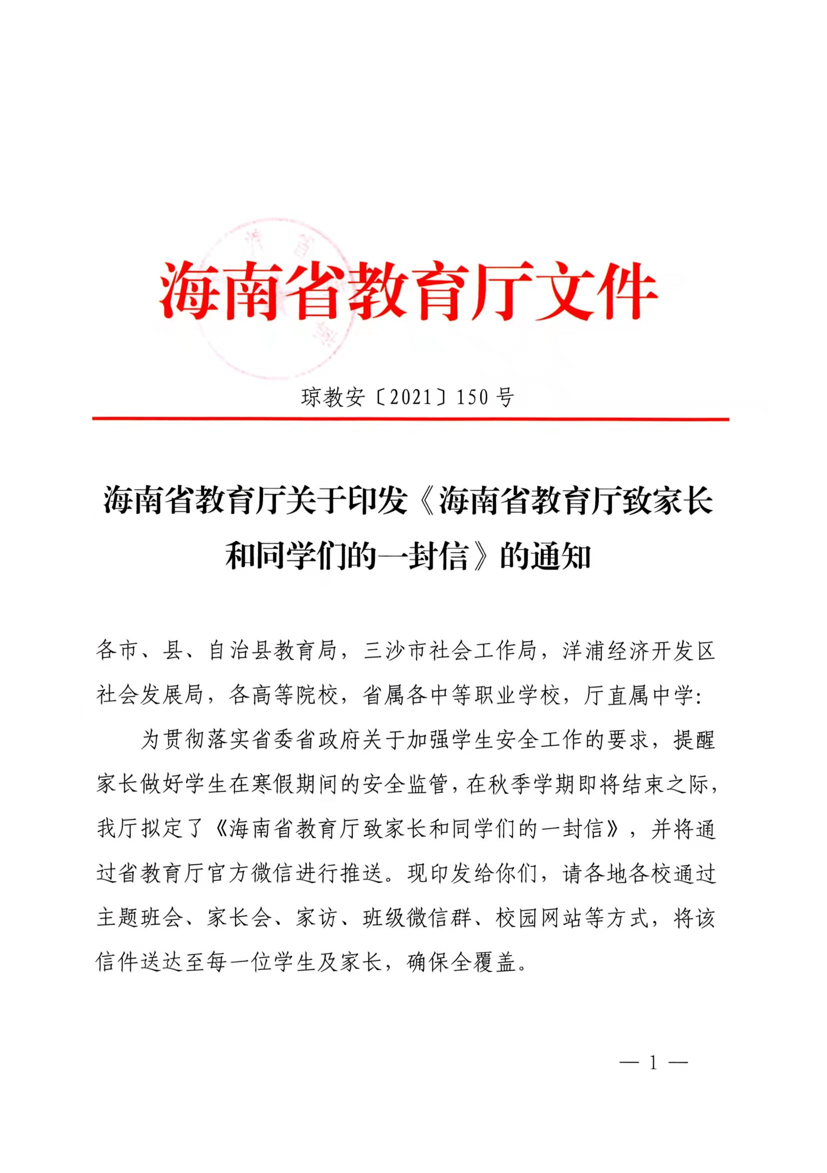 beat365英国官方网站关于印发《海南省教育厅致家长和同学们的一封信》的通知