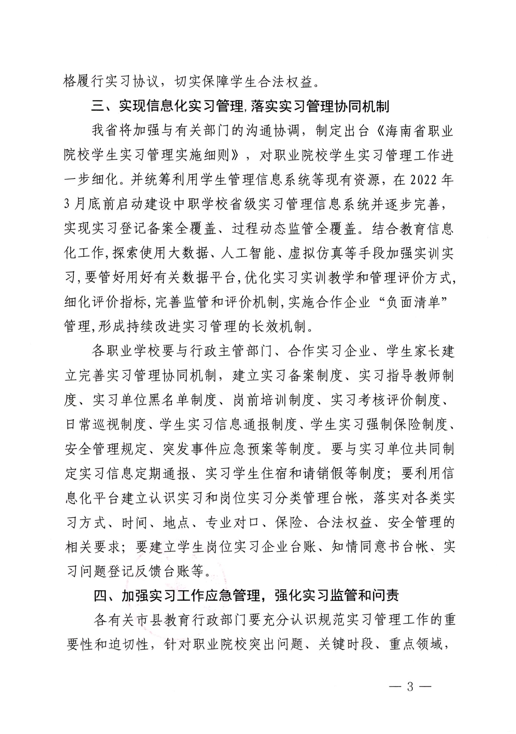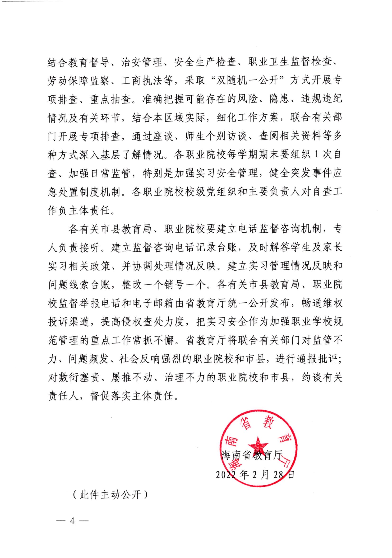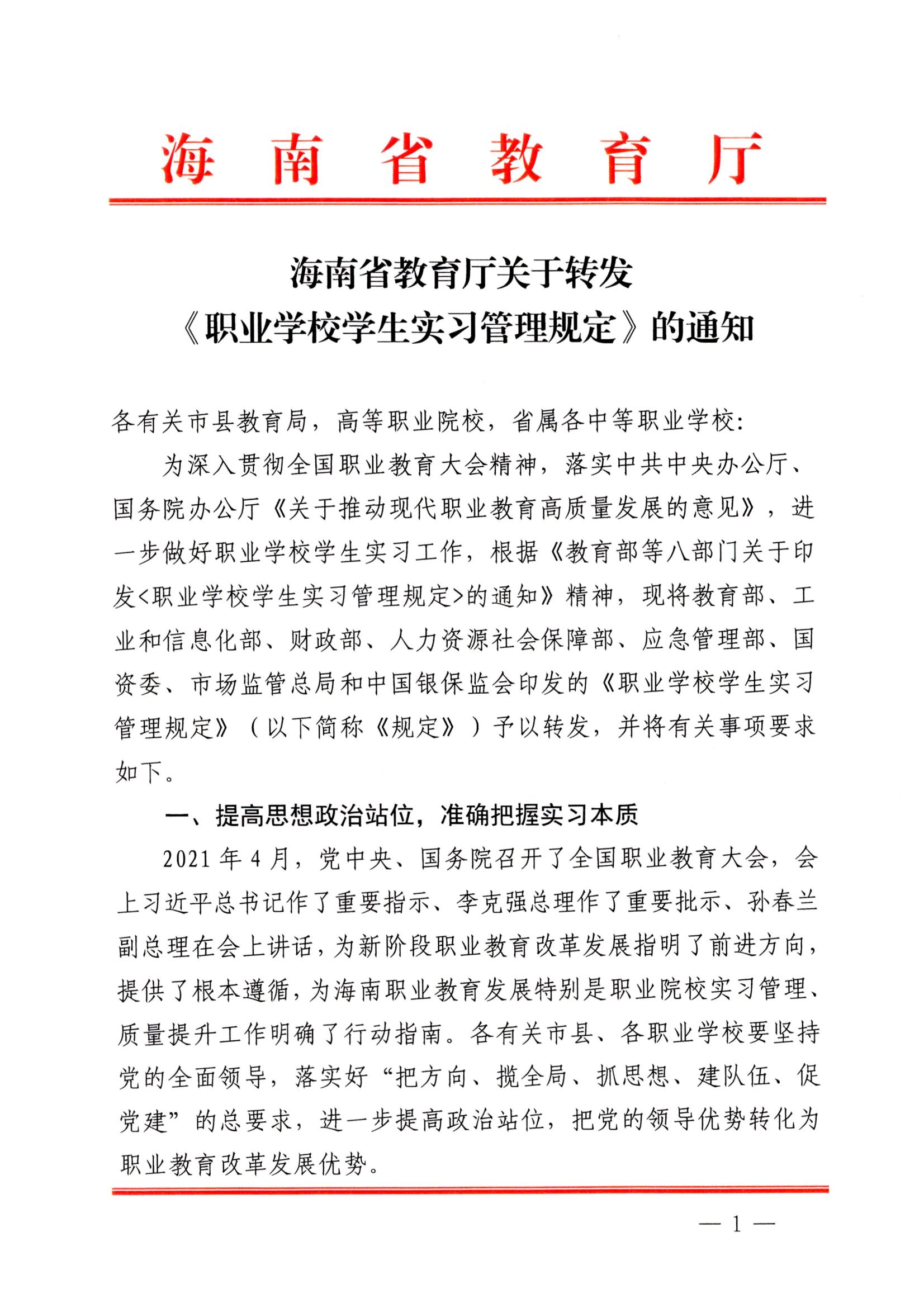 海南省教育厅关于转发《职业学校学生实习管理规定》的 通知