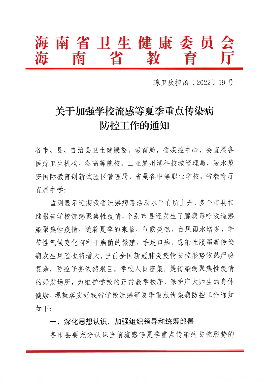 beat365英国官方网站关于加强学校流感等夏季重点传染病防控工作通知