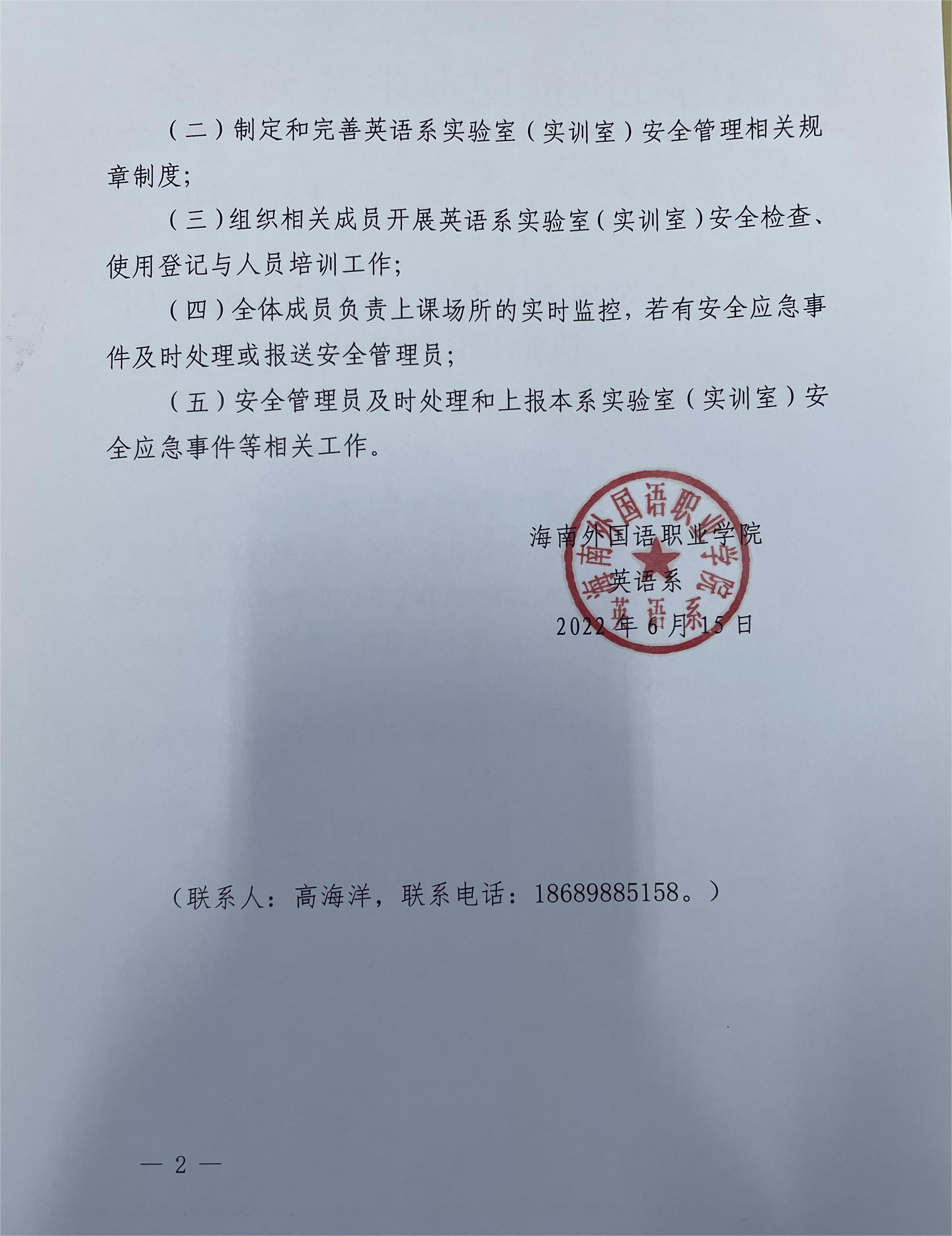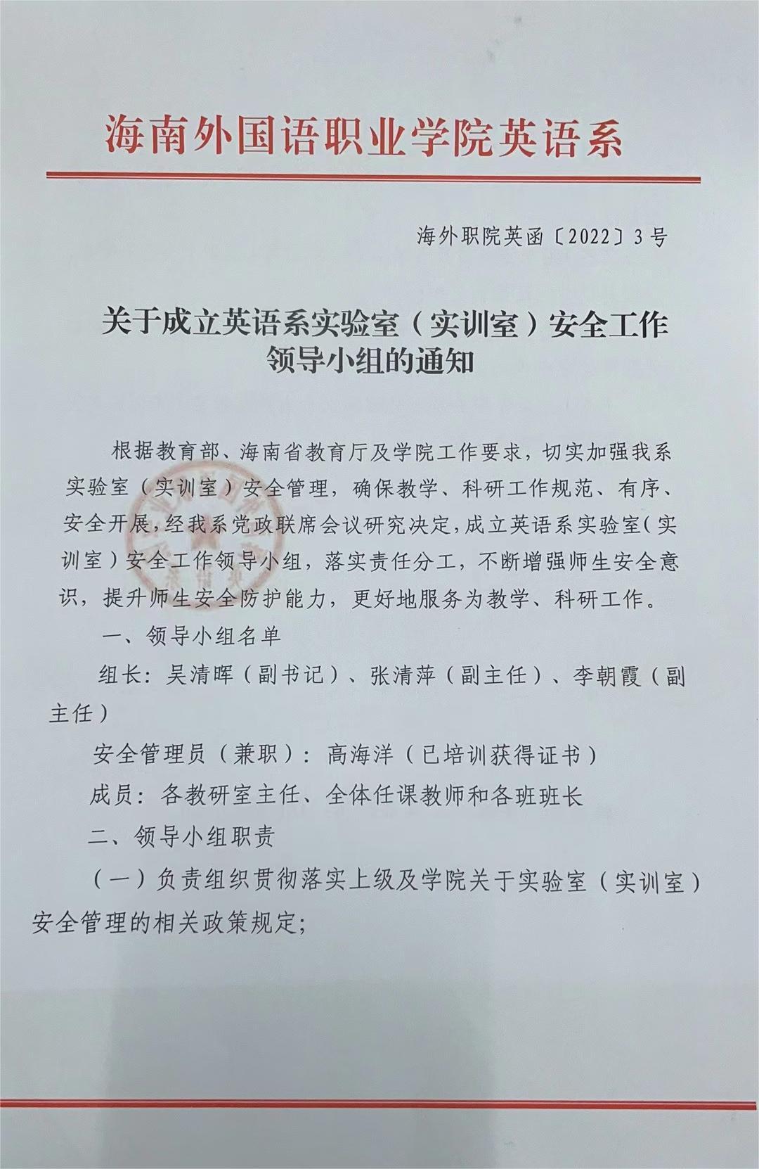 关于成立英语系实验室(实训室)安全工作领导小组的通知