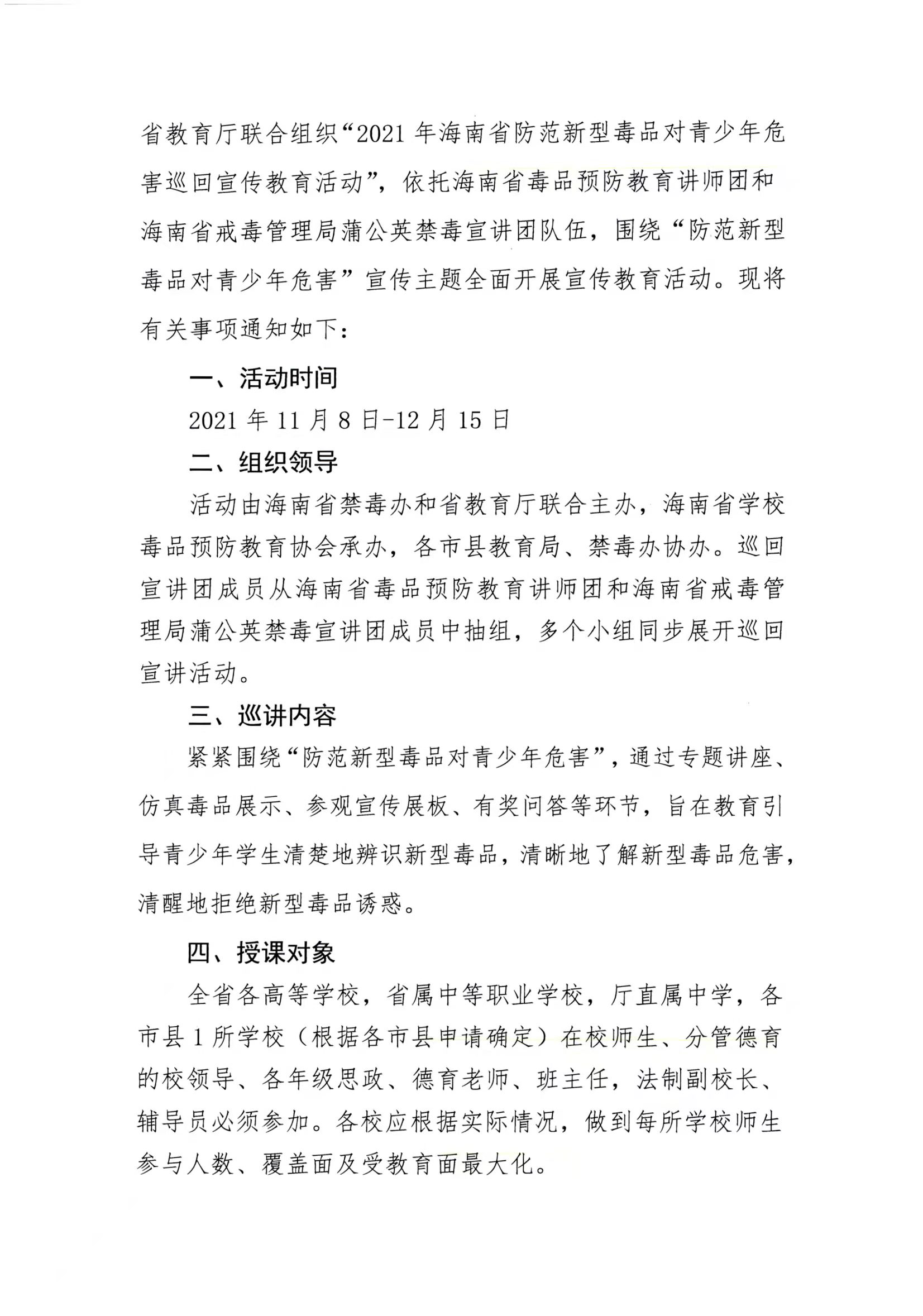 beat365英国官方网站关于组织2021年海南省防范新型毒品对青少年危害巡回宣传教育活动的通知