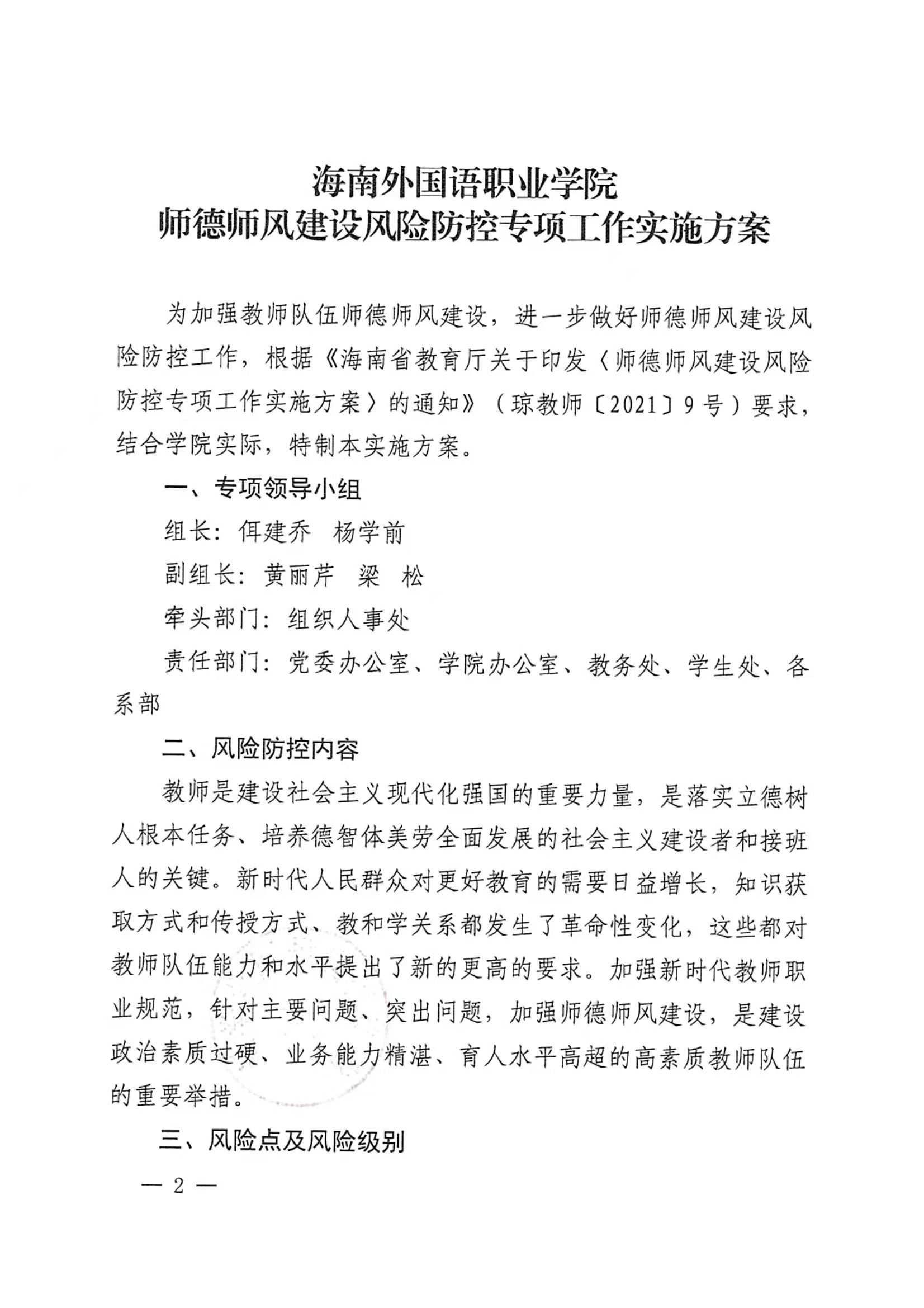 beat365英国官方网站关于印发《beat365英国官方网站师德师风建设风险防控专项工作实施方案》的通知
