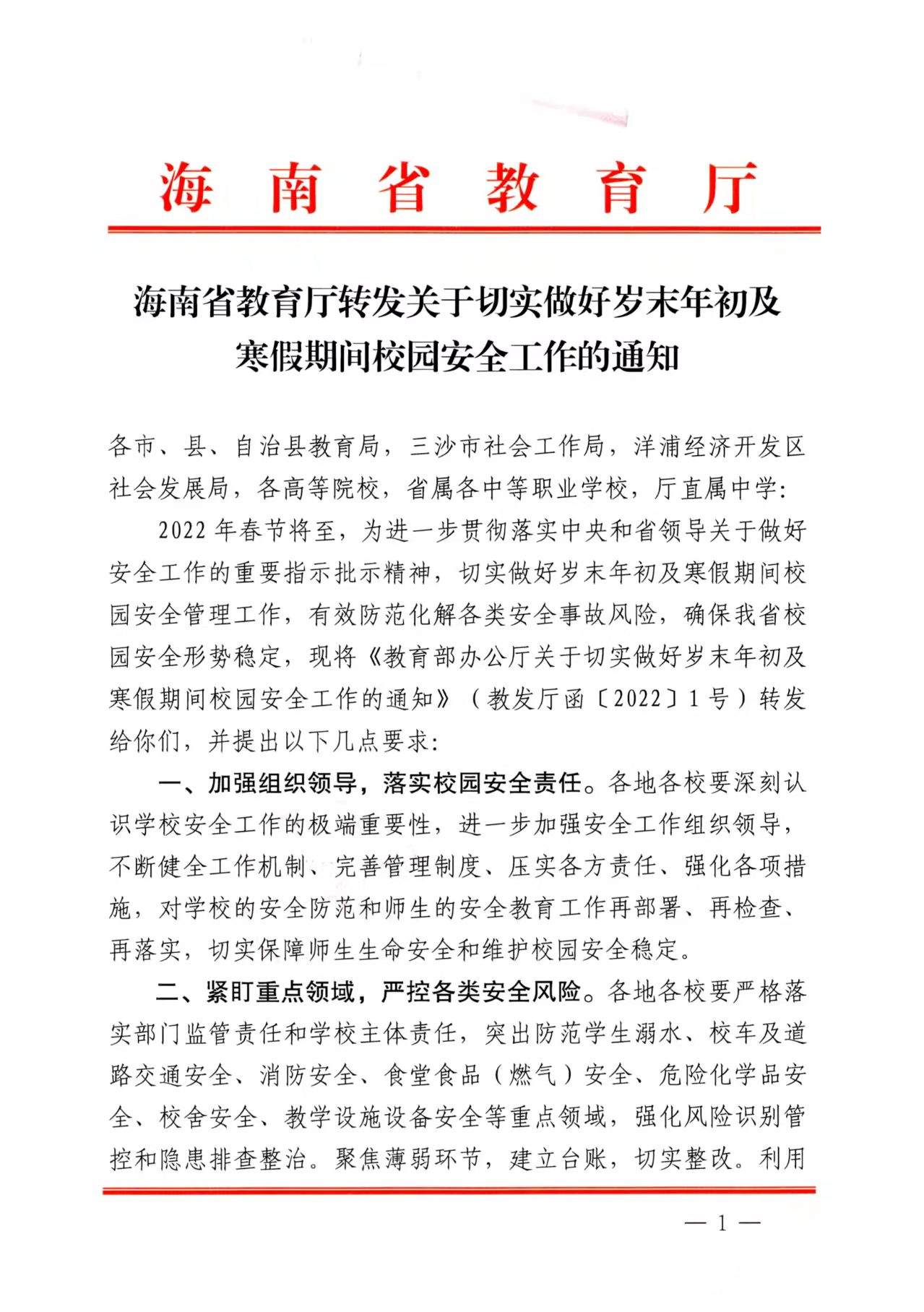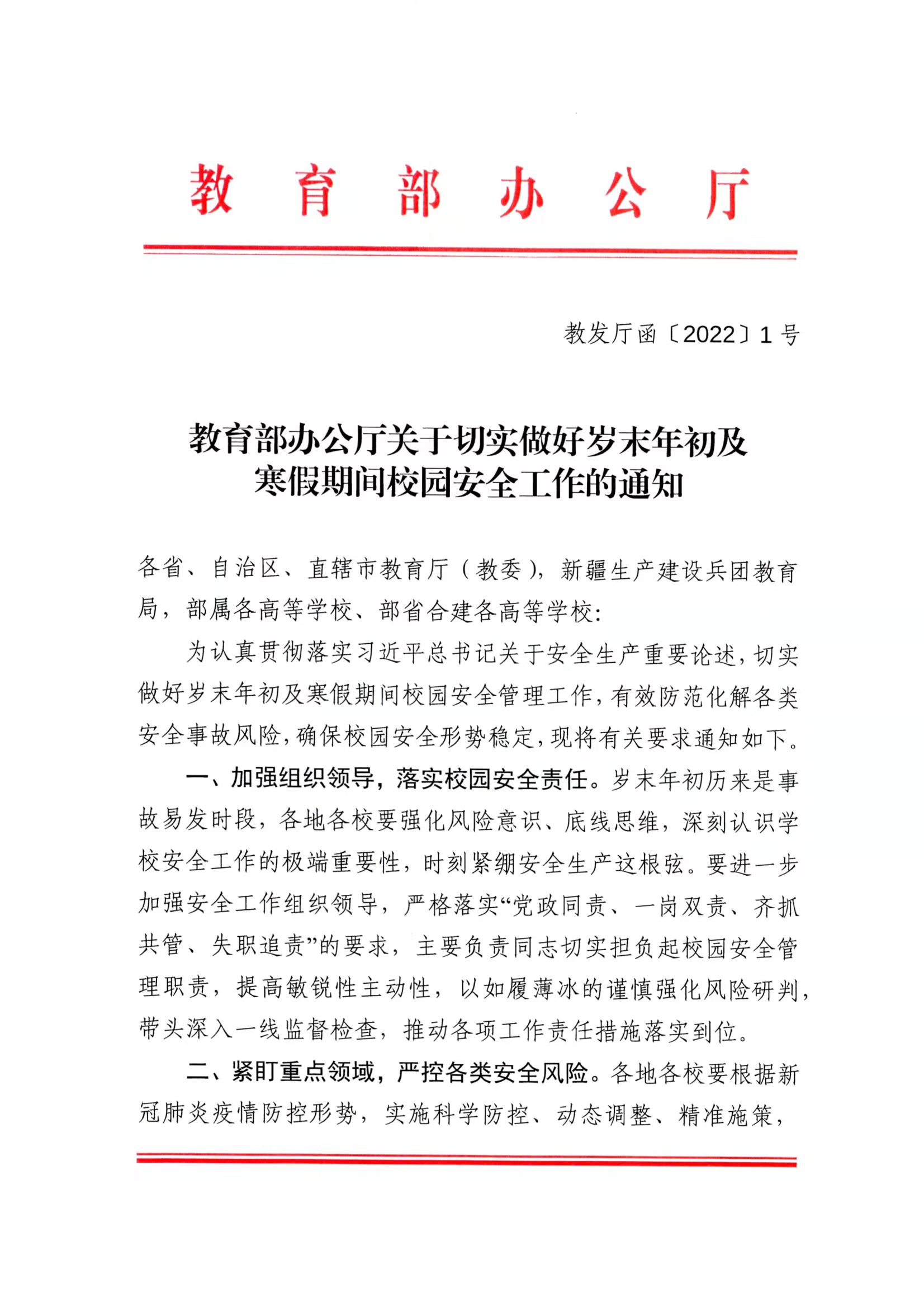 beat365英国官方网站转发关于切实做好岁末年初级寒假期间校园安全工作的通知