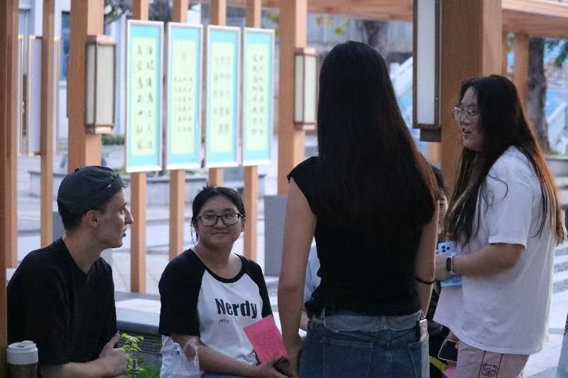 为了进一步活跃校园英语学习的气氛,提高学生英语口语能力,英语学院将指派骨干教师和外教在2023年9月20日晚上主持英语角活动。外教老师和学生们在体艺馆旁的凉亭齐聚一堂,共同度过了一个充满多元文化氛围的愉快夜晚。