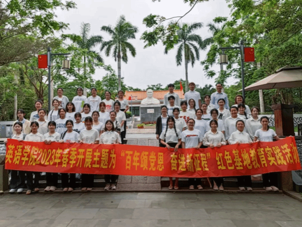 为深入开展学习贯彻习近平新时代中国特色社会主义思想主题教育,英语学院党总支第三党支部率领我院学生于4月15日上午在文昌市符克烈士纪念园和宋氏祖居组织开展了“百年颂党恩,奋进新征程”的教育实践活动。此活动由第三党支部书记张琼英和支部委员张瑞老师带队。