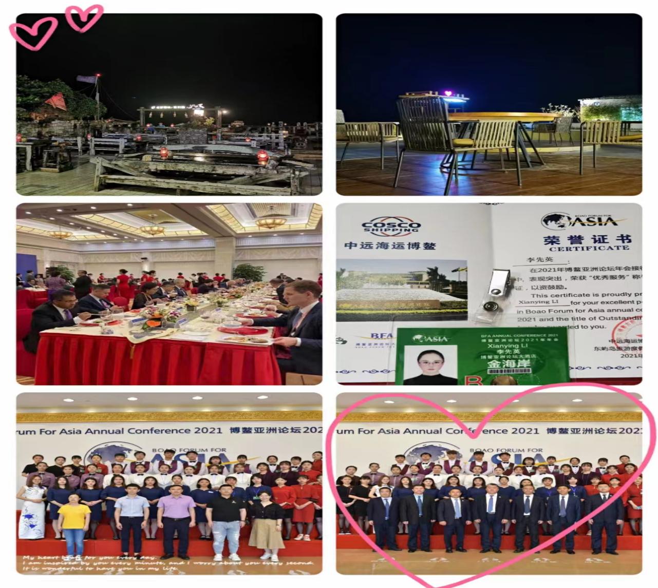作为大一的新生,她凭借着良好的形象和素养成功入围博鳌亚洲论坛志愿服务面试,但由于疫情年会取消。次年第二次面试,她轻而易举通过面试,最终成功代表学院与其他人共赴博鳌。第一次如此正式穿旗袍,她欣喜而又紧张,她一直知道,努力尝试一次胜于假想千万次。所以她一直很珍惜这样的机会!她也始终明白,所谓幸运,不过脚踏实地努力罢了,宝剑锋从磨砺出,梅花香自苦寒来!