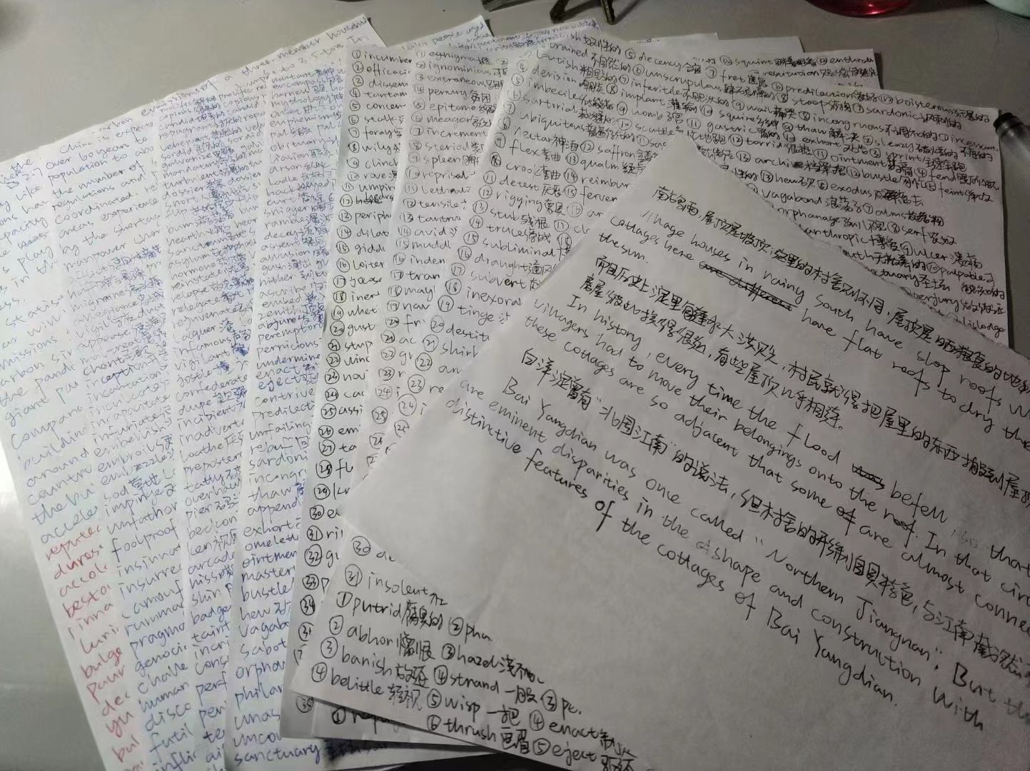 众所周知,英语的学习贵在积累,而英语的五项综合能力为:听说读写译。我或许并不像其他报考名校优秀的英专生那样,从小有着父母所创造的优质的双语环境,因此有着优异的“童子功”。我的英语学习之路驶于高一,在那之前我对英语并没有什么兴趣,更谈不上喜欢,所以严格意义上我也属于“后来居上”型选手,即英语学习的逆袭者,所以不要小看任何人,谁都有可能成为黑马。
