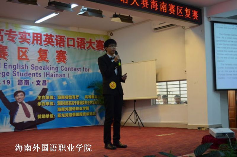 我系选手郏翌,来自12应用英语1班,获得第九届全国高职高专实用英语口语大赛海南赛区专业组亚军