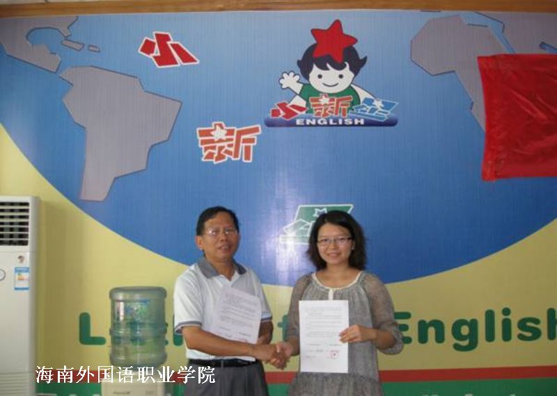 文昌小新星培训中心校长(右)与我院签实习基地协议