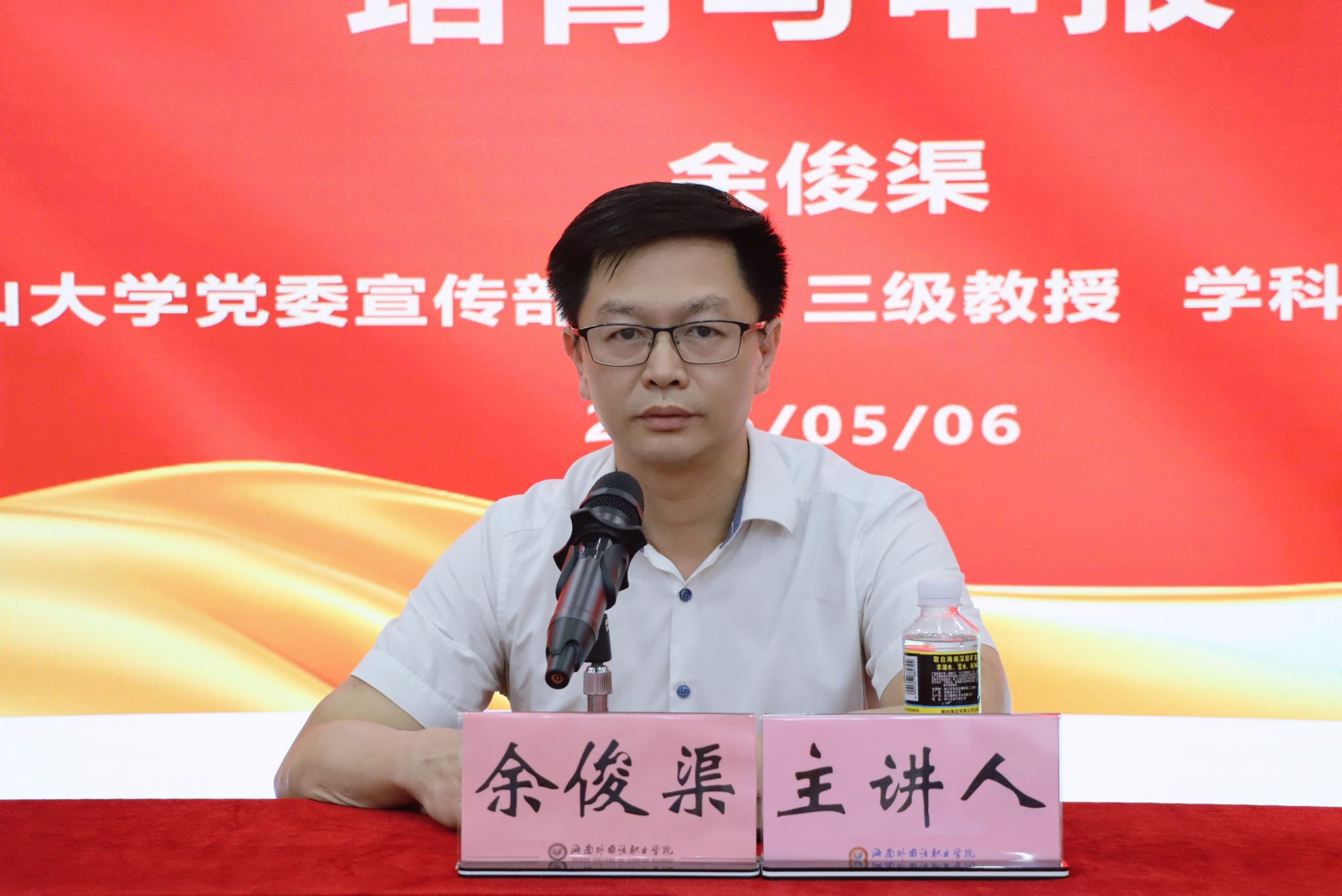 当天上午,余俊渠作题为《高校思政工作精品项目选题和申报》专题讲座,围绕精品项目政策解读、选题的原则与策略、申报流程与技巧、申报书的撰写要点等展开培训,结合典型案例分析当前思政项目申报的常见问题,强调选题需紧扣时代需求、突出本地特色,申报材料应逻辑严谨、数据翔实。同天下午,余俊渠作题为《全国党建工作样板党支部培育与申报》专题辅导,从政策背景、创建标准等七大方面系统讲解,结合高校党建实际,为创建全国样板党支部提供理论与实践路径指导。