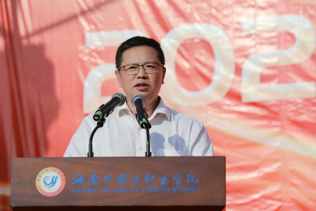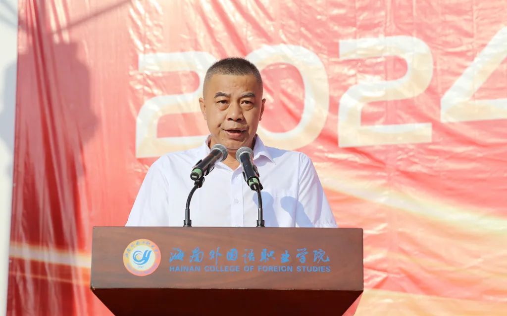 黄学彬在动员讲话中向3600多名新同学们表示欢迎和祝贺,向承担本次军训任务的武警海警总队第四支队表示感谢。他指出,今年的新生入学较往年更为特殊,学校刚刚经历超强台风“摩羯”侵袭,校园环境受到严重损害。在全校师生的共同努力下,当前学校教学和生活秩序已基本恢复正常,但重建工作仍在持续进行,学校新校区建设也即将启动。在学校发展最为关键的时期,希望同学们能给予理解和支持,与学校携手共进,共建更加美丽的校园,并以最饱满的热情投入到军训和以后的学习中。