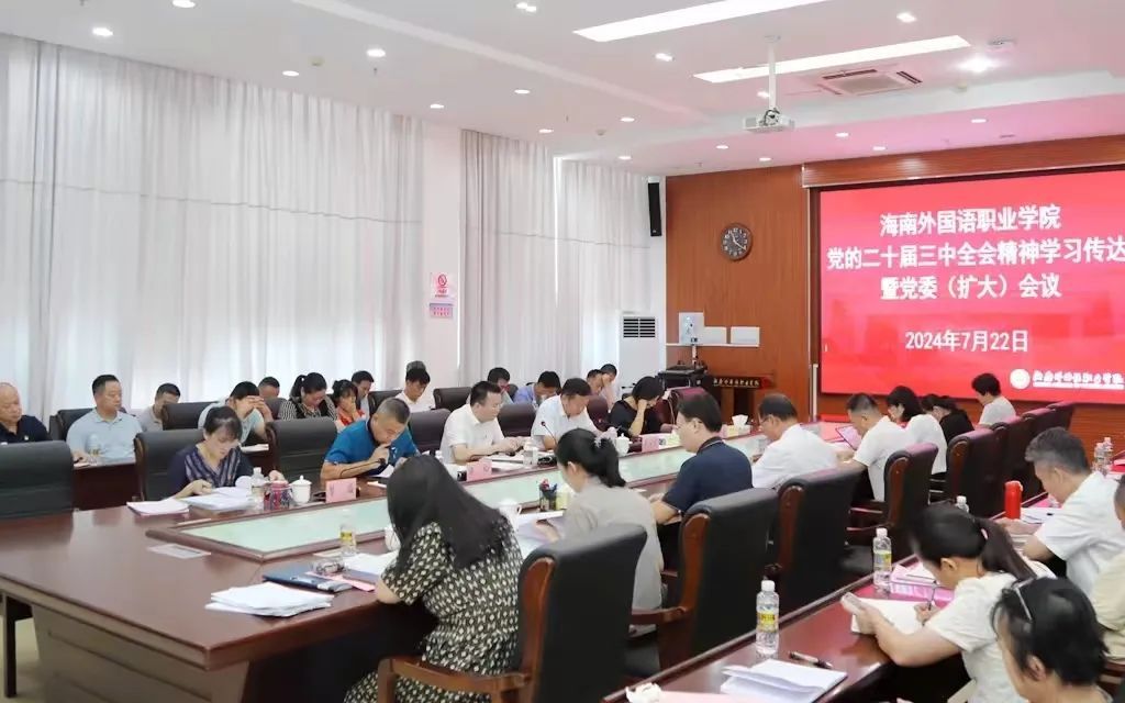 7月22日,学校党委召开扩大会议,传达学习党的二十届三中全会精神,部署贯彻落实工作。学校党委书记陈正强主持会议并讲话。学校党委班子成员黄学彬、梁松、时秀梅、曾盛出席会议。