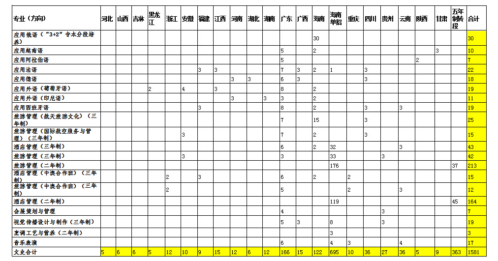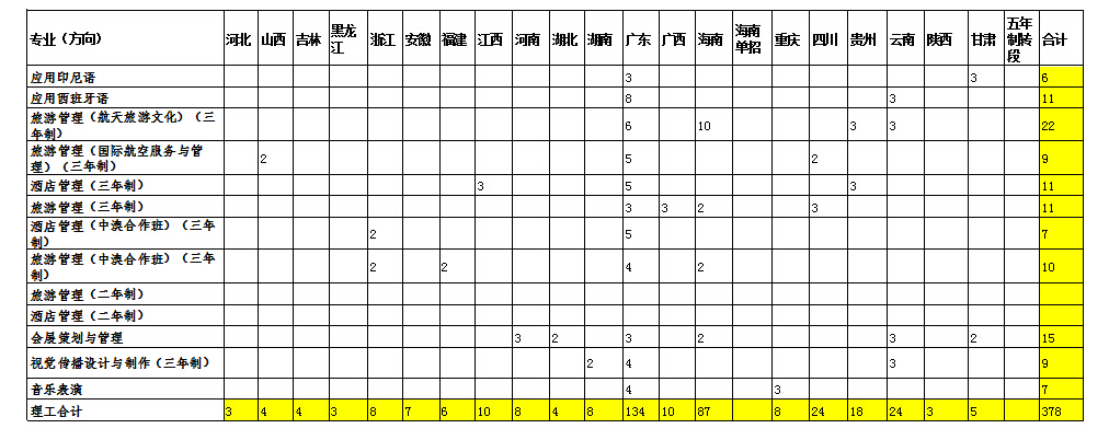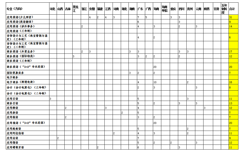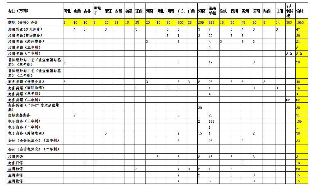 我院2016年高职分省分专业招生计划投放一览表