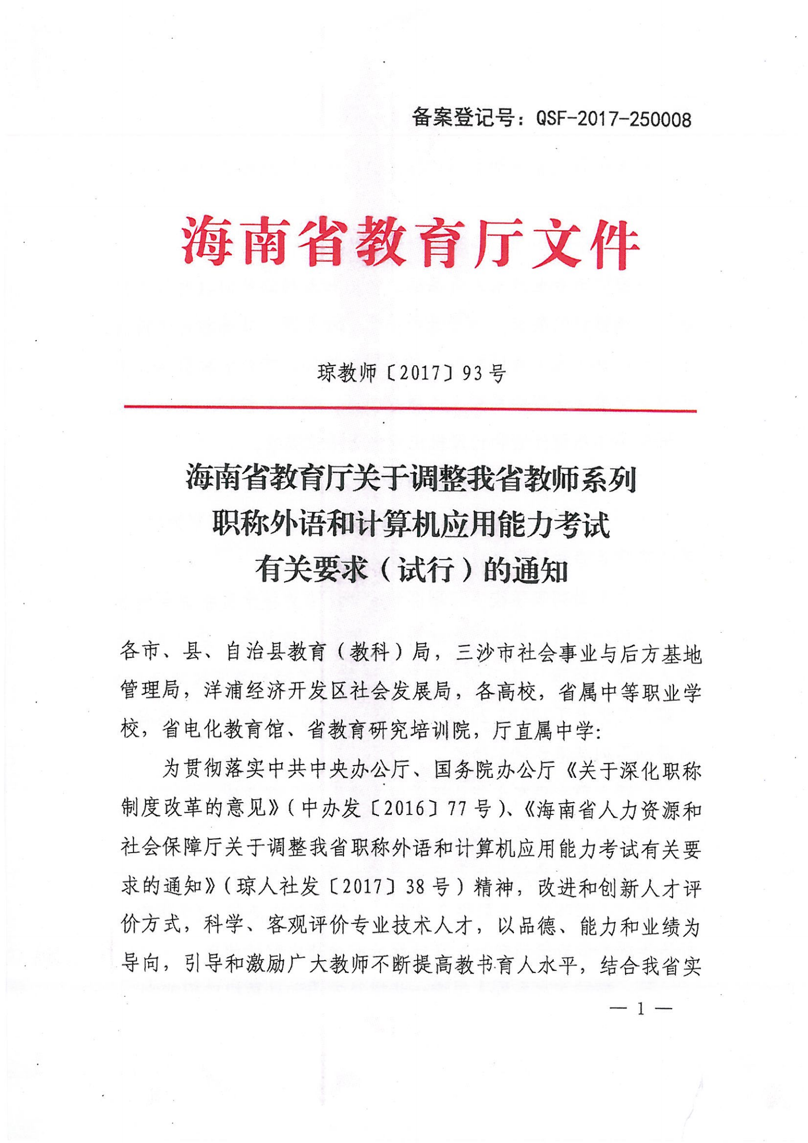海南省教育厅关于调整我省教师系列职称外语和计算机应用能力考试