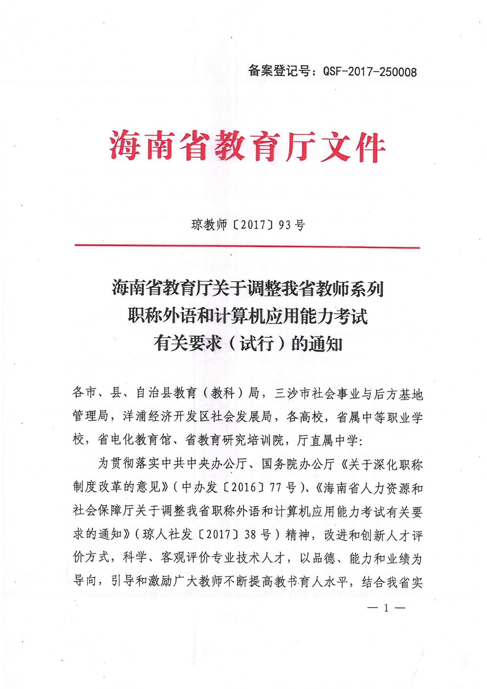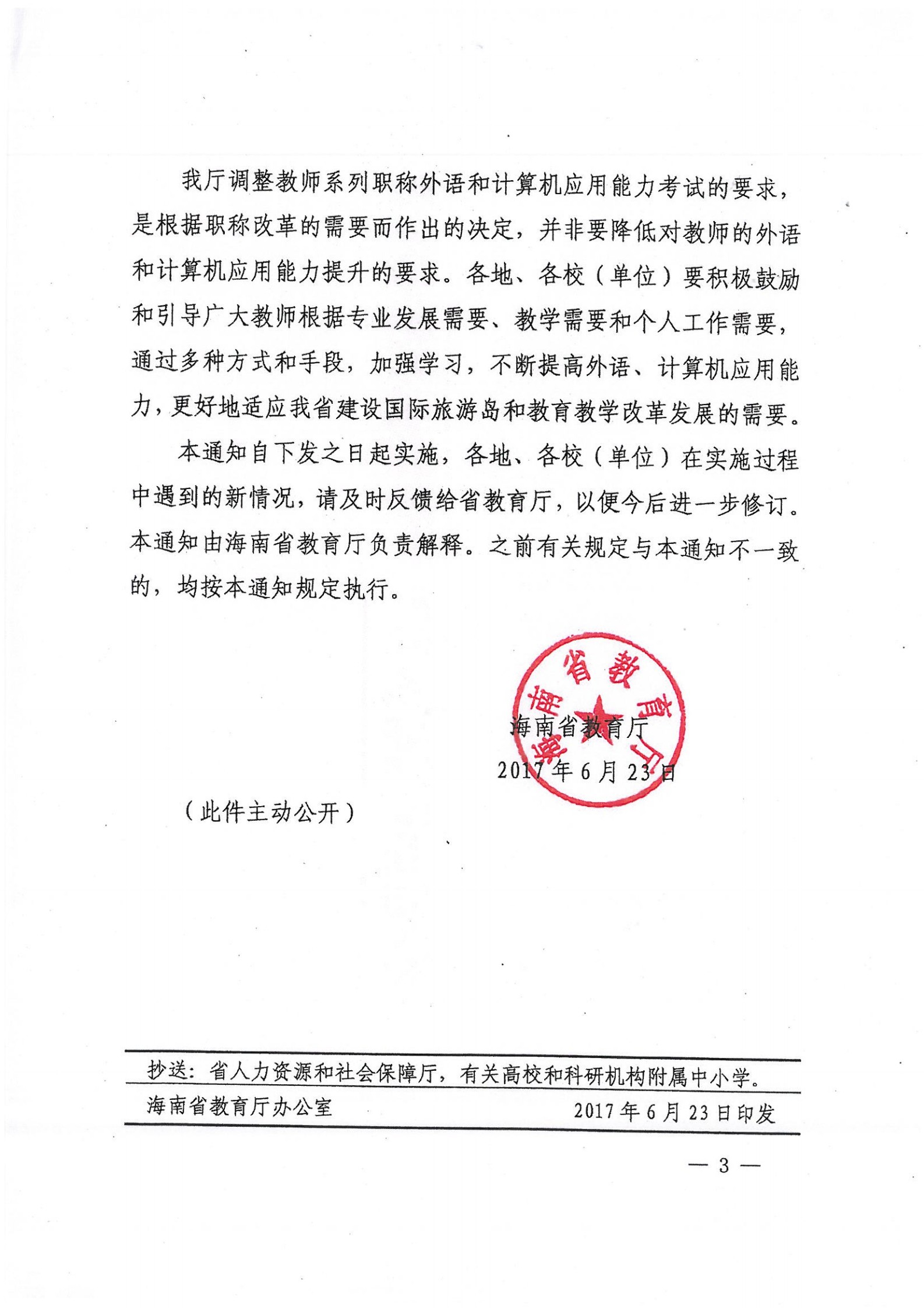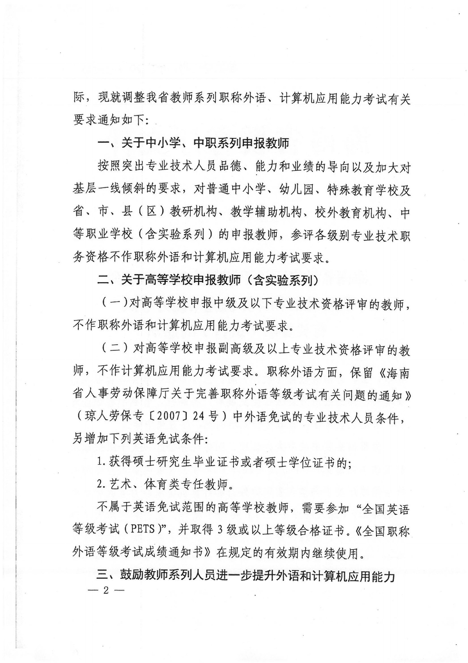 海南省教育厅关于调整我省教师系列职称外语和计算机应用能力考试有关要求