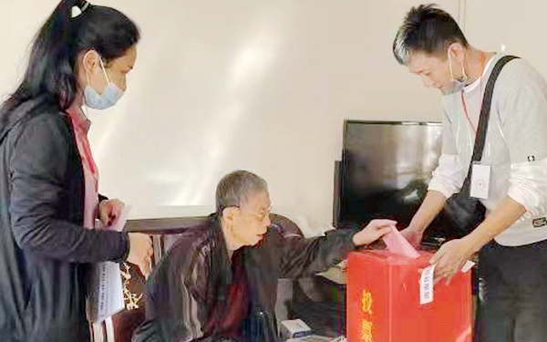 流动票箱人员上门为选民服务